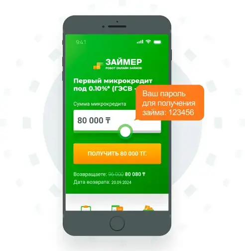 Сумма микрокредита от 10 000 до 300 000 тенге сроком до 12 месяцев.